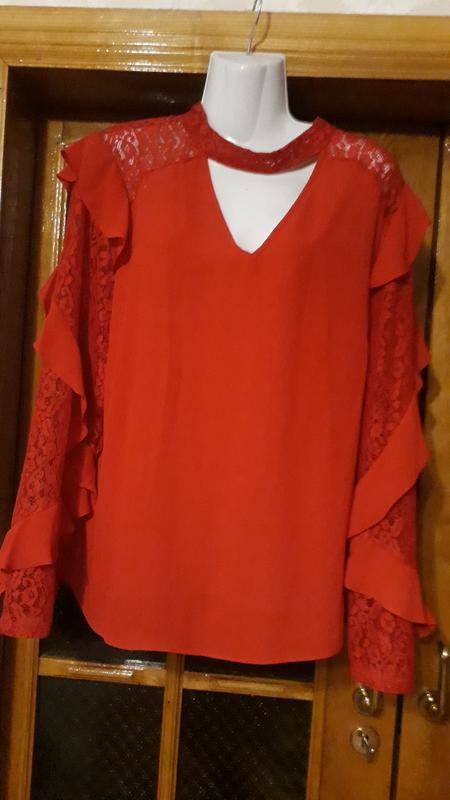 Продам новую нарядную блузку 16 размера на наш 50-52 размер. На фото вышла яркая в реалии спокойный, приглушенный красивый красный цвет. ПОГ 58 Длина 68 Длина рукава 64 см
