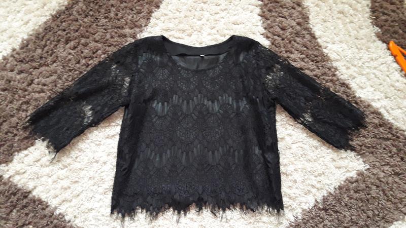 Ажурний укорочений прямий топ. Підкладка нейлон. Не тягнеться. Плечі 37, ркав 38, ширина груди 44, довжина 50. Без дефектів ,одягнений 2 рази.