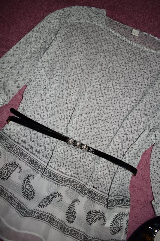 Шикарна блузка.Якість люкс..Продається без пояса. Заміри пахви 57 см, ширина внизу 57 см. Довжина повністю спереду 67см,ззаду 72 см. Довжина рукава від вирізу 47 см, плечовий шов трохи приспущений, від плечового шва 27 див. Реально підійде до 2xl.