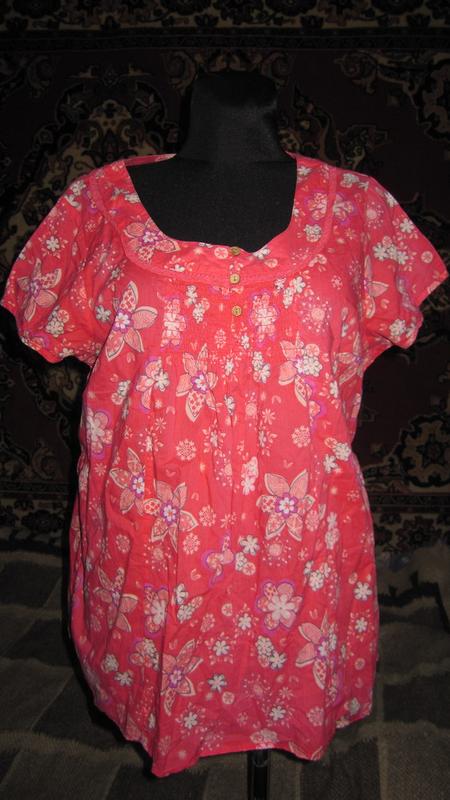 блузка кораллового цвета.хлопок.ПОГ 63.длина 70см