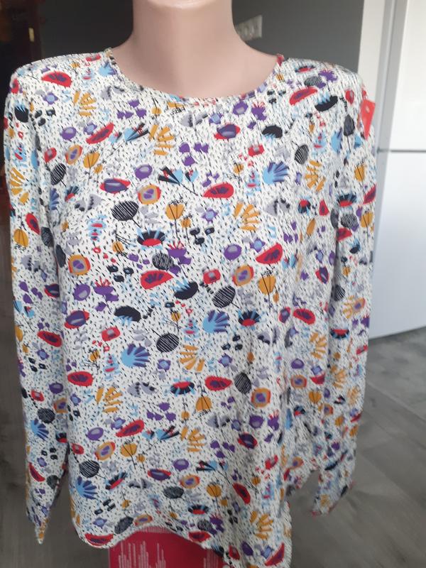 Віскозна блузочка з довгими рукавами .Ззаду на гудзиках,перед трохи коротше заду.Приємна на дотик і до тіла.Заміри:довжина спинки 69,довжина переду 60,ширина плечей 42,довжина рукава від плеча 57, ПОГ 50