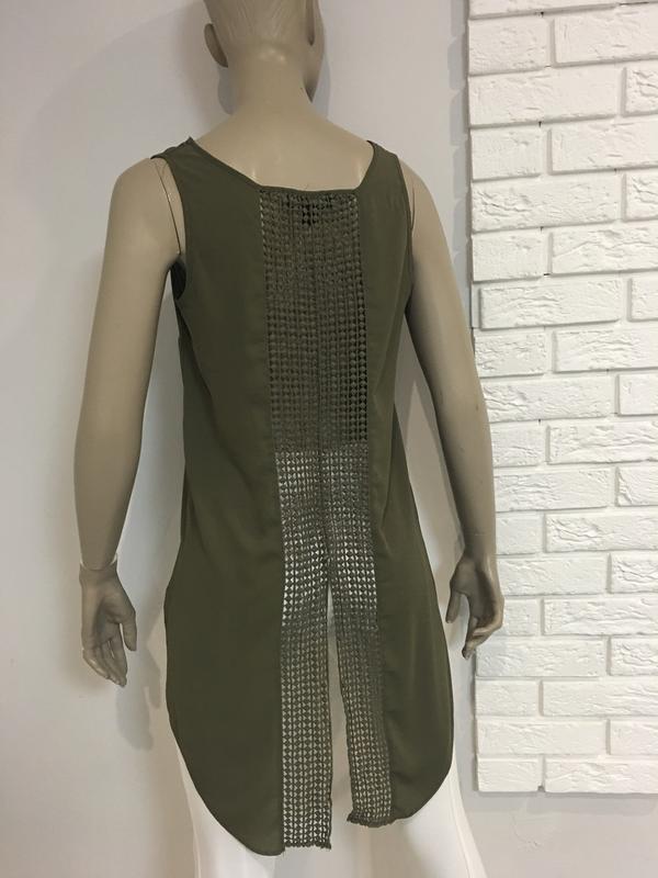 Блуза Atmosphere без рукавів модного кольору хакі, вертикально по спині йде ажурна вставка, спереду коротка- заді довга