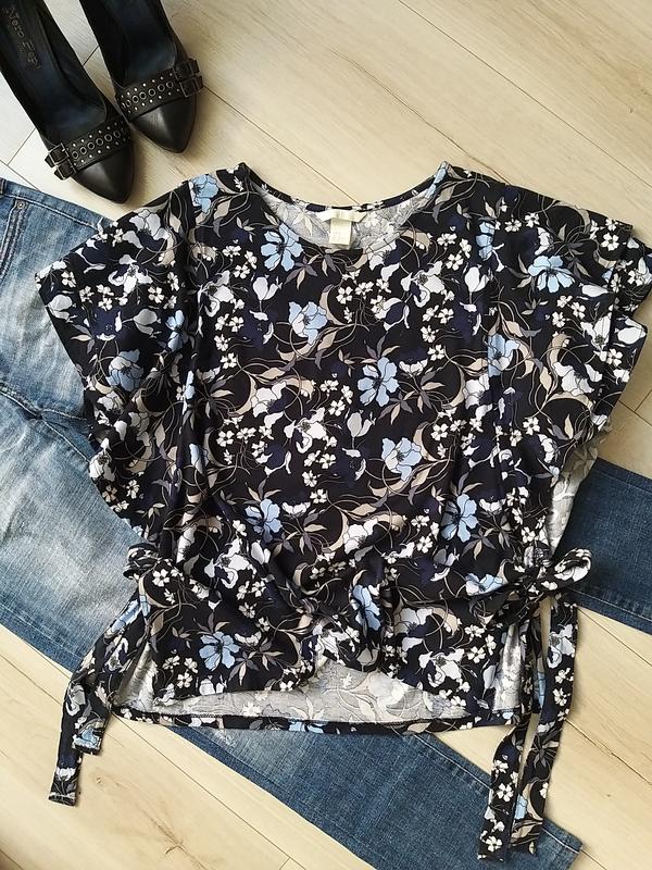 Очень красивая кофта с короткими рукавами-воланами. Красиво смотреться на теле (если нужно могу сделать фото). По боках завязки. Приятна к телу.