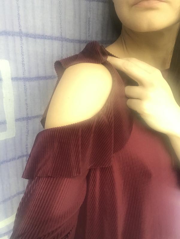 Блуза плиссе,тренд сезона.Цвет винный.длинный рукав фонарик,открытые плечи с рюшами