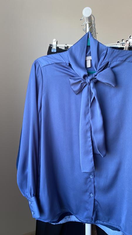Блуза з бантом неймовірного синього кольору