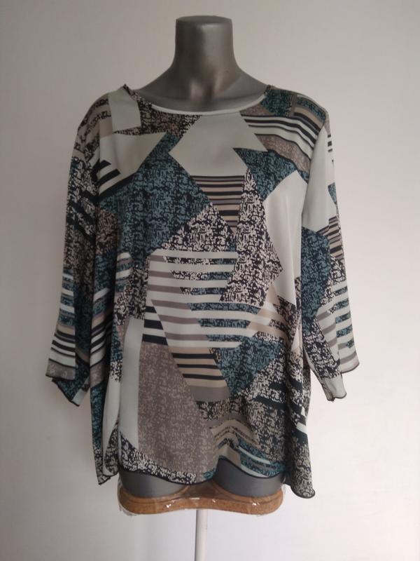 Об'ємна блуза з принтованої шовкової тканини, не облягаюча, розширена до низу, широкий рукав 3/4