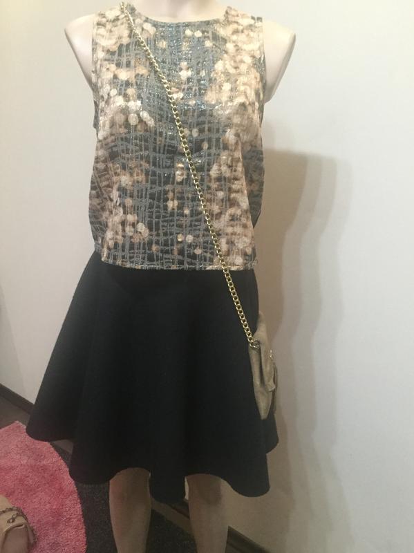 Дуже красива оригінальна Блуза Waggon {114} б/у,одягала лише пару разів Розмір М/38 Довжина 43 см Плече 5,5 см ПОГ 46 см Півколо знизу 45 см Склад: 100% поліестер