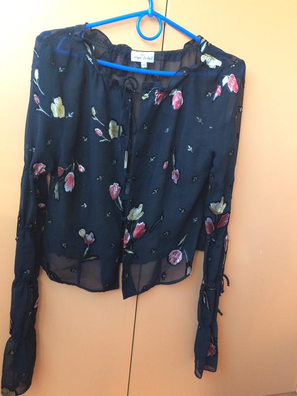 Блузка. Очень красивая. Шикарный шифон. Чёрная с рисунком. Оригинальный рукав. Размер 44-46. Блуза короткая по пояс. Очень хорошо будет смотреться с любым низом- юбкой, брюками или джинсами. Доставка новой почтой.