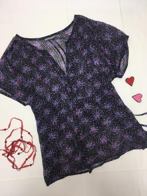 Туника-рубашка свободного кроя с завязками на спинке. Требуется замена пуговок и небольшой ремонт нижней части планки (видно на фото 3). На фото 2 видно повреждение ткани в области плиссировки на спинке изделия. Если носить на черную майку то совсем не будет видно. ПОГ - 72 Длина - 72