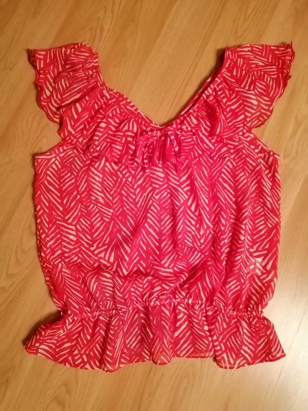 Лёгкая, воздушная блузочка Mia moda, состояние новой. Спинка от выреза до резинки 34 см, подмышки 51 см, резиночка 38 см, тянется до 56 см, рюш 10 см. Плечи рюш впереди 8 см, на плечах 15 см,