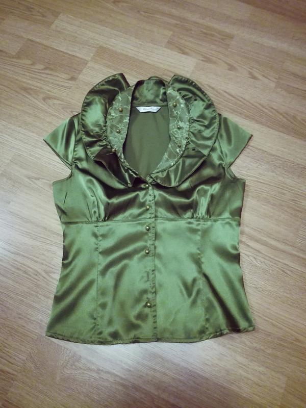 Продам очень интересную и нарядную блузу,декорирована перламутровыми пуговицами.Материал плотный атлас в сочетании с кружевами.Длина блузы 56см,плечи 38см,ПО груди 44см.