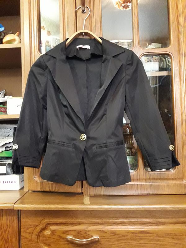 Застегивается на 1 пуговицу. Карманы обманка. На рукавах золотистые пуговицы и рукав 3/4.