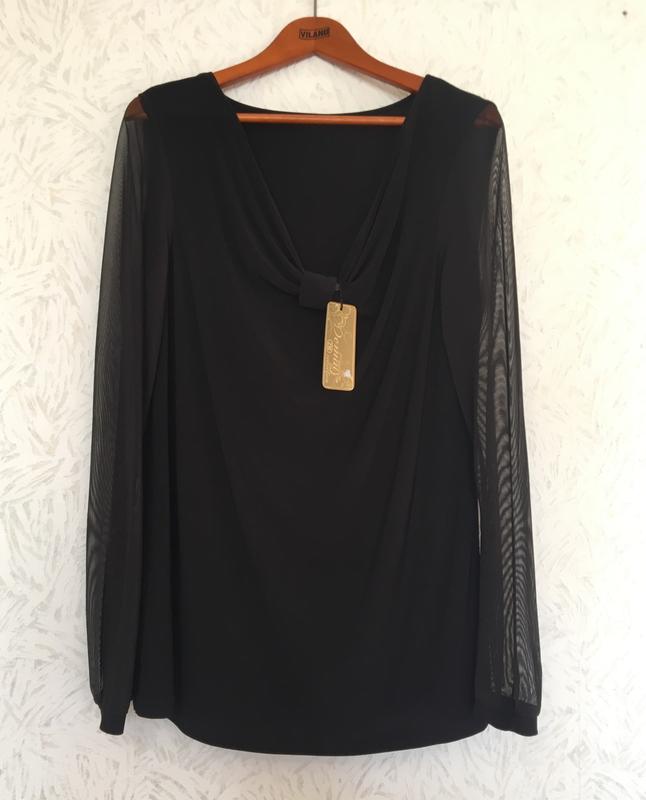 Жіноча чорна блуза з гарним вирізом Хорошого якості! Заміри р. 58: ПОг - 56 см Побіди - 62 см Д изд - 78 см Д р - 64 см