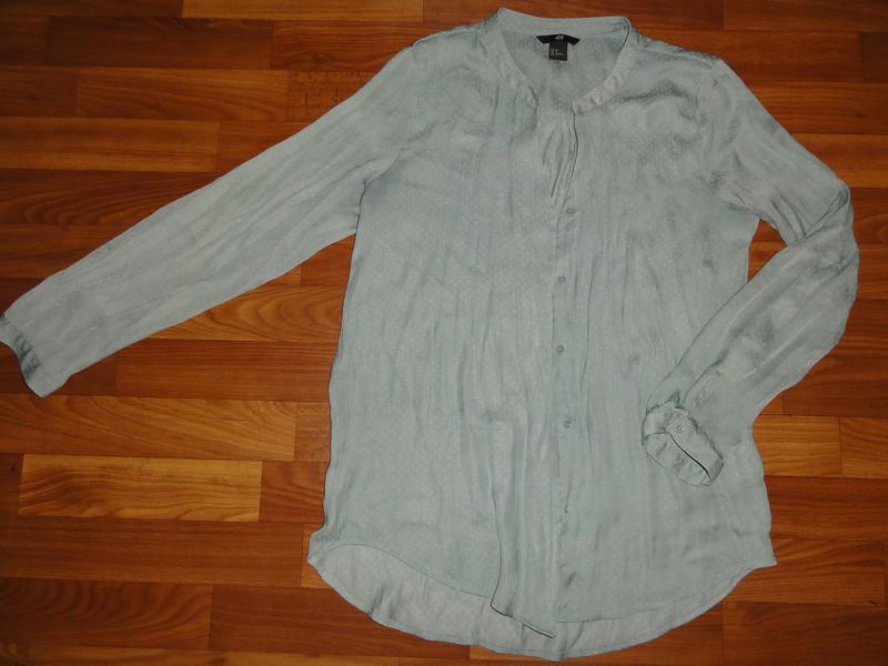 Легкая блузочка рубашка светло-зеленого цвета. Узор - мелкий квадрат. Без дефектов, без затяжек. По бирке 10/38. Ткань похожа на шелк, очень приятная и мягкая Длина общая спереди 66 см, сзади 70 см Рукав 59 см Плечи по спине 40 см Подмышками 50 см