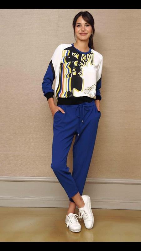 Стильная блуза производства Турция, фирма SAY. Очень яркая и необычная блуза, которая всегда будет смотреться вне времени и может носиться как под классический стиль одежды, так и под джинсы. Блуза без эластана, рукав врезной. Рукавчики сшиты из 2х видов ткани. Брючки тоже в наличии, можно составить комплект, размер 38, 40, 42. Размер указанный 38. Объем груди - Объем бёдер - без растяжки, с растяжкой Длинна по спине - Ширина рукава - Дополнительные фото и замеры отправим по запросу, товар весь в наличии. Также смотрите другие модели в моей ленте.