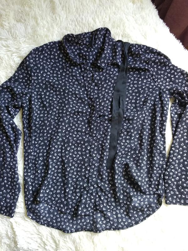 блуза в трендовой расцветке, приятная к телу, в идеальном состоянии, на шее сзаду шелк ленты для бантика
