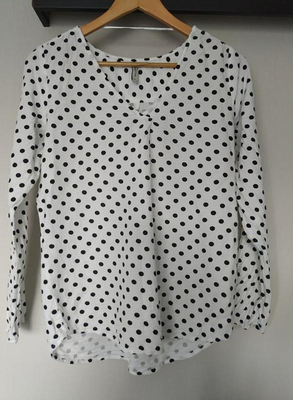 легкая, приятна к телу блуза в горошек. Состояние новой. Одета была 1 раз. Размер С