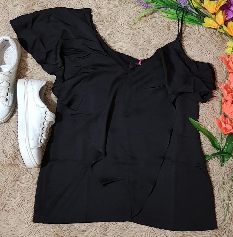брендовая блузка на одно плечо с воланами длина-60 ПОГ-42 ПОТ-45