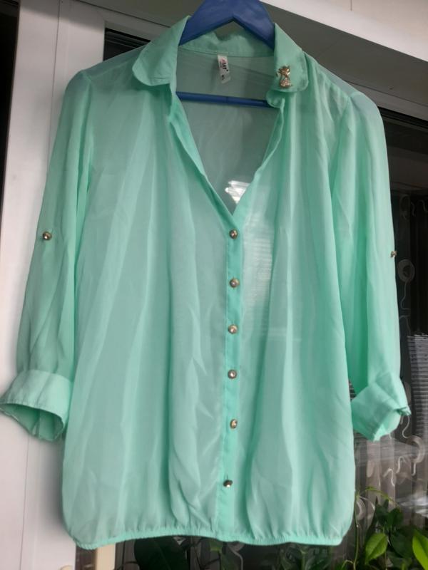 Продам блузку цвета мяты Состояние новой одевала один раз Рукав подворачивается на 3/4 -отворачивается Размер М/L Очень легкая и приятная к телу Деньги на карту отправлю почтой