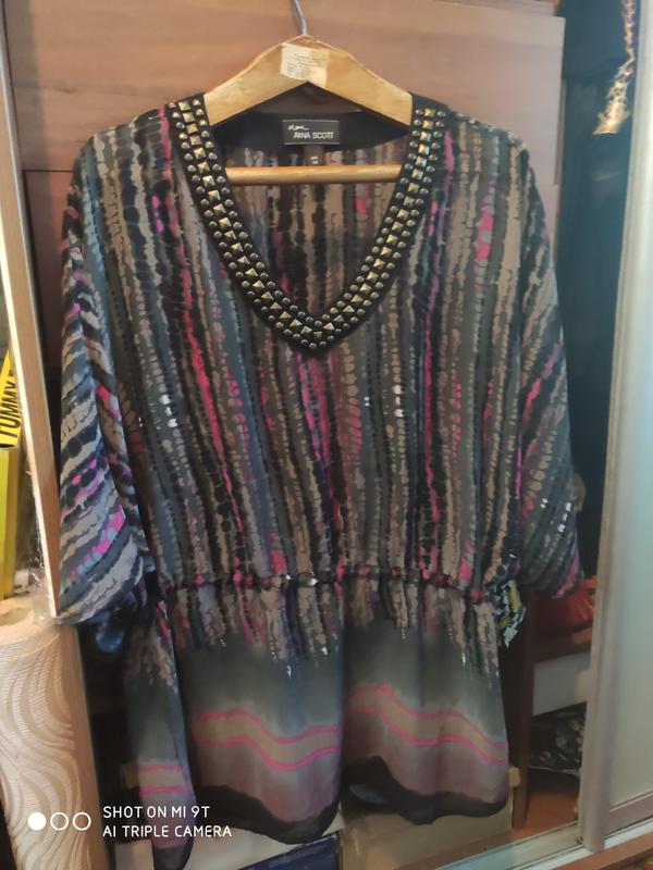 Туника из полупрозрачного шелка, рукав кимоно.