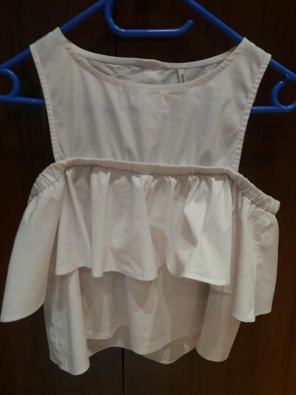 Коротенькая беленькая блуза.Длина 47 см;ширина 54 см;ПОГ 42 см