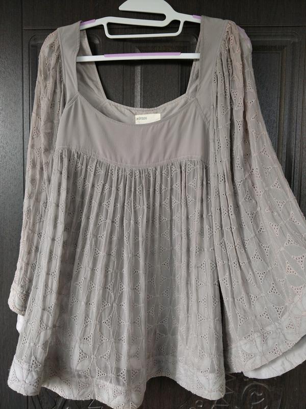 Шикарная шелковая блуза , с актуальными в этом сезоне, широкими рукавами. Нежная вышивка делает ее очень нарядной. Цвет как на фото. В груди 46 длина 70 Рукава длиной точно как изделие. Края блузы обработаны кантом на изнанку.шириной 4.5 см. очень качественно пошита, все швы спрятаны. кокетка двойная.