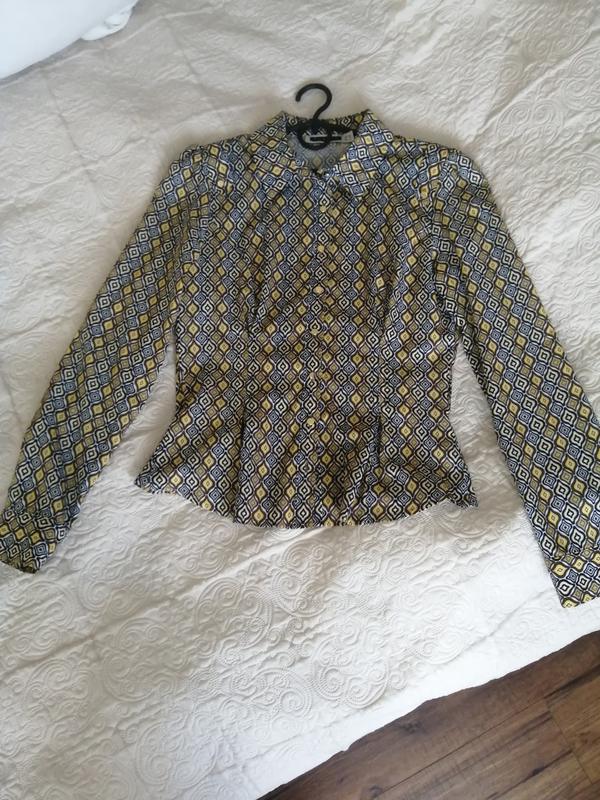Блуза с интересным принтом. Немного приталена, корректирует фигуру. Акцент на плечах