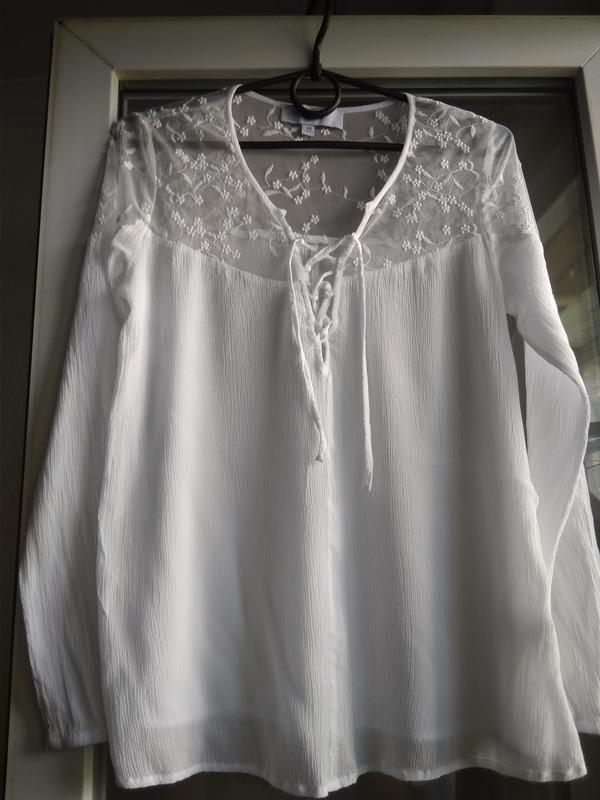 Лёгкая, вискозная блузка На шнуровке, рукава на резинке Длина - 57см Ширина от подмышки к подмышки - 48см Рукава - 60см