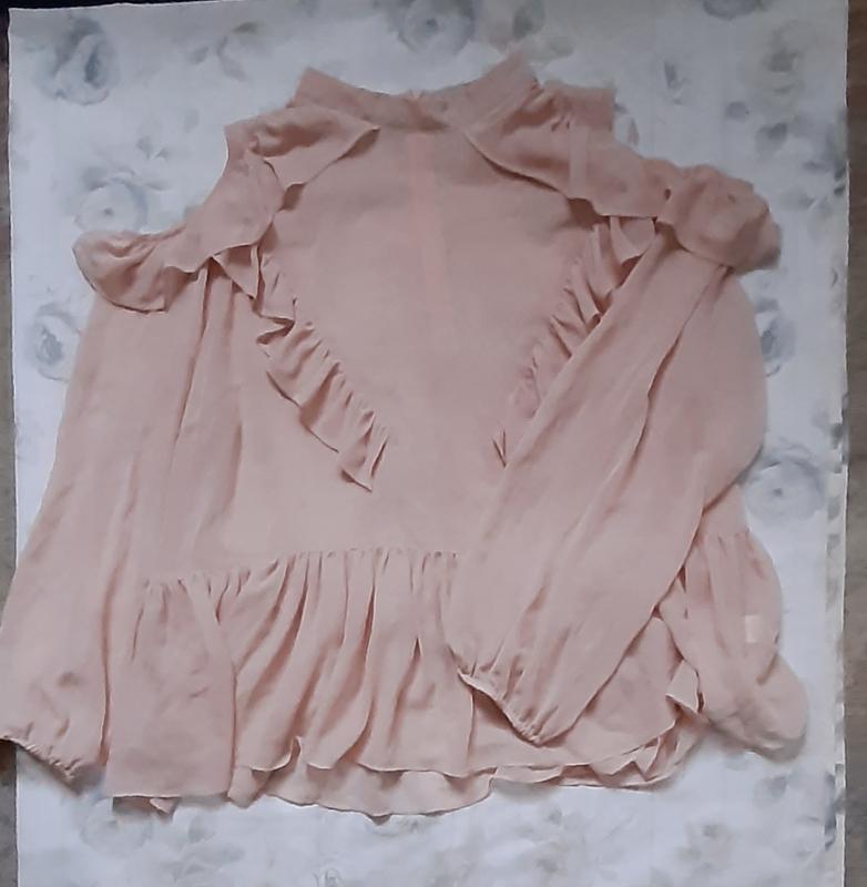 Шифоновая блуза, полупрозрачная, пудрового цвета. На плечиках есть вырезы