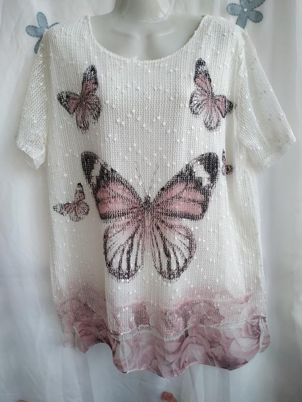 БЛУЗА С ПРИНТОМ -, БАБОЧКА ПОГ. 56 ПОБ. 58 ДЛ. 77
