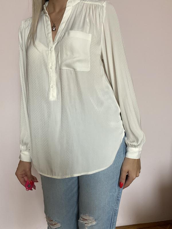 Очень красивая блуза H&M Рр С, подойдёт и на аккуратную М Состояние новой Длина спереди 62 Длина сзади 68 Рукав 59 Пог 54 Плечи 38