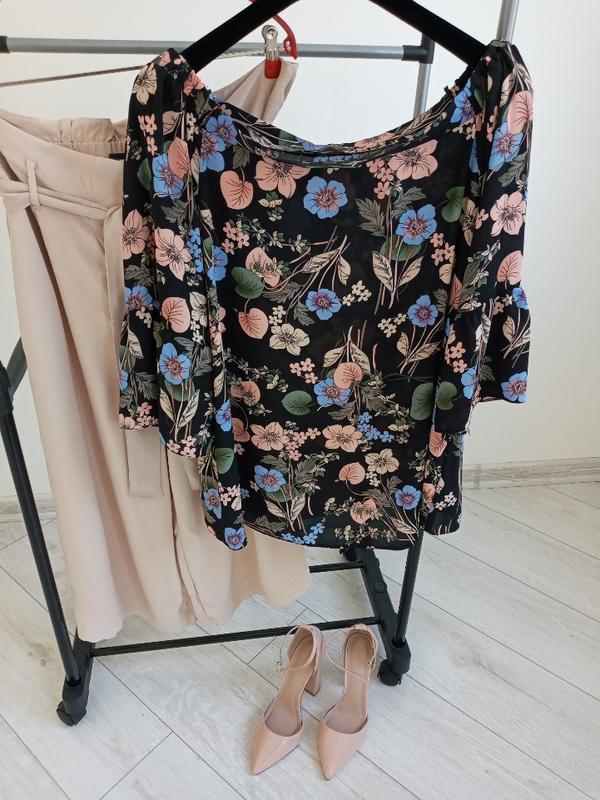 нарядная блуза в цветок,красивое сочетание цвета,открытые плечи,шп50,пог 58см,рукав 3/4,др 45см,ди 60см