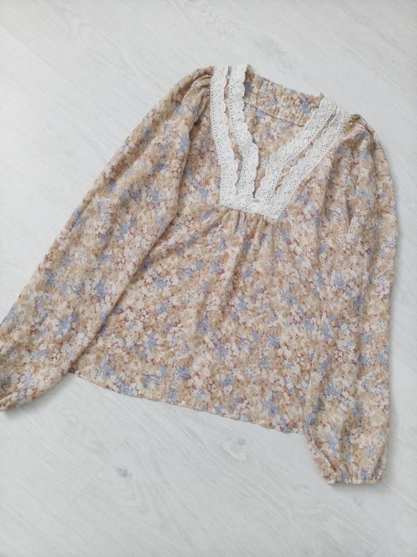 Очень красивая блуза с вязаными вставками рукав на резинке, разрезики по бокам в отличном состоянии длина по спинке 61 ПОГ 53 рукав от горловины 78/52