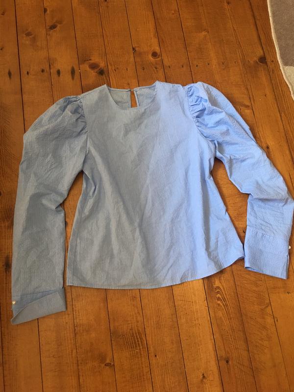 Продам топ с актуальными рукавами буфами нежно-голубого цвета, бирок нет, размер М