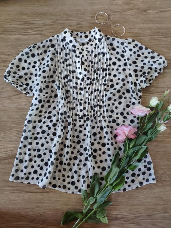 Очень красивая блуза в горох, спереди пуговицы, шифон