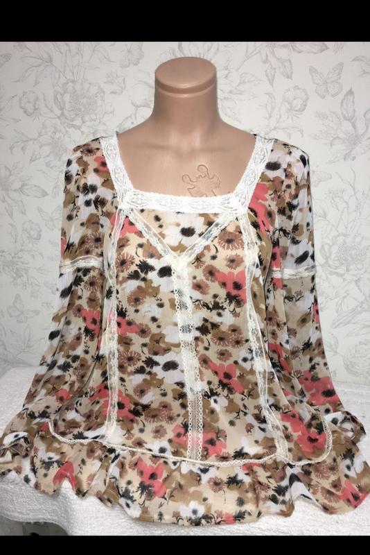 💛💙 минимальный заказ 100 грн Красивая блуза от "Atmosphere" р.12/М-ХЛ. Прозрачная. Без подкладки. Низ воланом, спереди кружевная отделка. Ориентируйтесь на замеры ПО: Плечи 35см, грудь 46см, талия 56см, рукав 60см, длина изделия 70см. ✋Все вопросы заранее, обмена и возврата нет. ✋ Вся информация в разделе "Обо мне". ✋ Дополнительные замеры и фото по запросу.