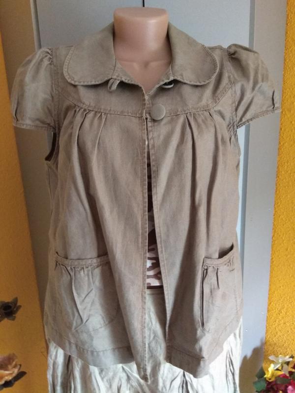 Состав: 50% хлопок +50%лен, цвет хаки с кофейным отливом, длина 57 см, плечи 37 см, ПОГ до 57 см, ПОТ до 57 см, ПОБ до 60 см. Смотрите также другие мои объявления много хороших фирменных вещей обновление почти каждый день адекватные цены подписывайтесь чтоб первыми узнавать о новинках.