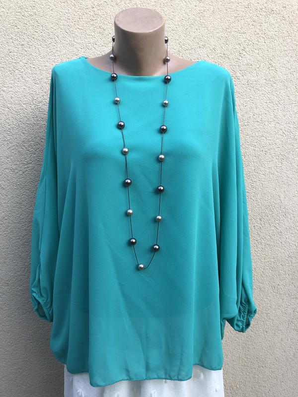 размер указан приблизительный В наличии ещё Блуза в красном и синем цвете) Рукав от ворота 57 см,ПО рукава по низу 10см- тянется на 18 см) ПОГ по нижней майке 48 см-+ тянется на 70 см-+ ПО по низу шифона 77 см-+ Длина по спинке 66 см-+, по бокам зрительно длиннее