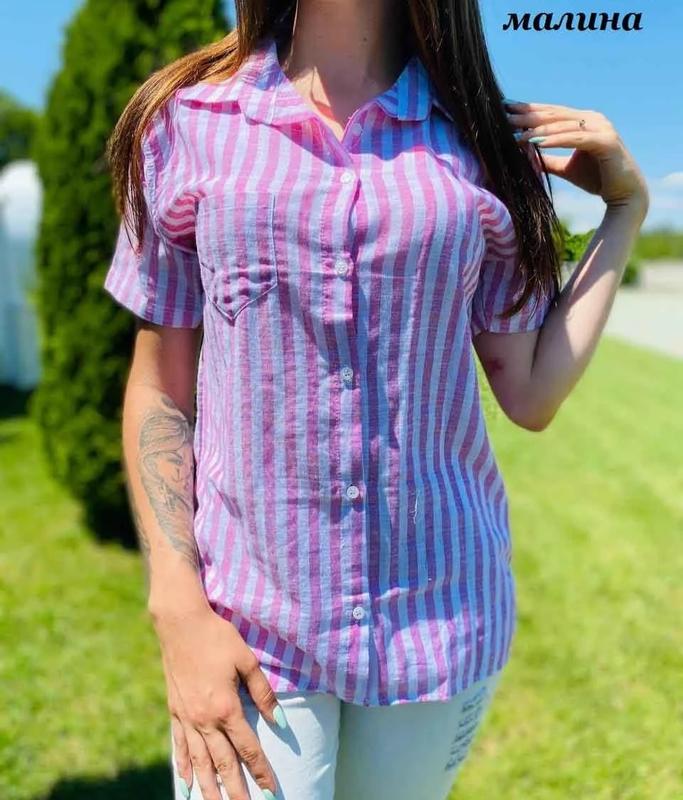 Лёгкая рубашечка,блузочка из натуральной ткани Размеры в наличии S/M замеры дам