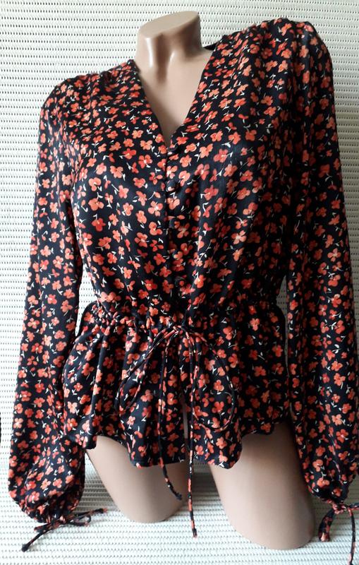 Стильная блуза.Цвет черный в цветочный принт.Застегивается на пуговички.Талия на подвижном шнурке,можно регулировать.Рукава также на подвижных шнурках.Состояние новой вещи. Плечи 38 Пог 48 Рукав 61 Высота 59 Обмена и возврата нет!Оплата 100% на карту Приват банка!Смотрите другие мои лоты!Комбинирую в одну посылку! Всем приятных покупок!