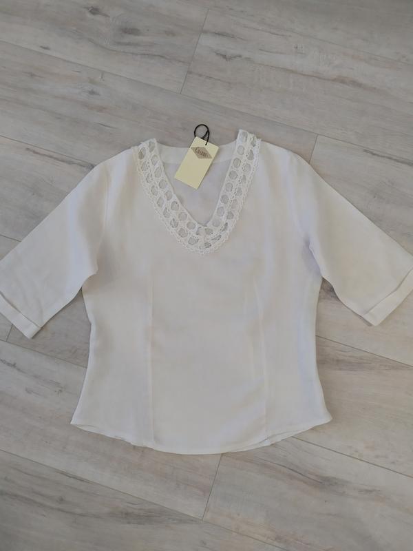 Новая. Приталенная блуза из льна. С боку застёгивается на молнию. Длина 58 см, ОГ 50 см, ОТ 44 см, плечи 38см, рукав 35 см.
