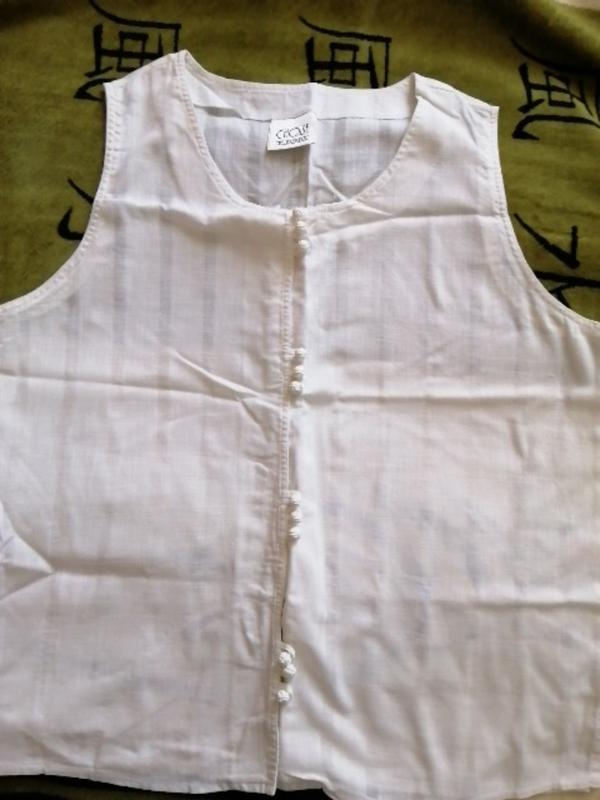 Блузка 100 %котон, плечи 37 см, объем груди 110 см, низ 104 см, высота изделия 62 см.