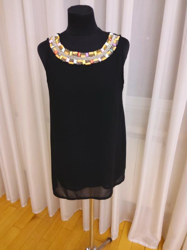 Черная майка.блуза шифон с украшением tu раз. S-M Замеры ПОГ 46 ПОБ 48-49 Длина 66 немного тянется.