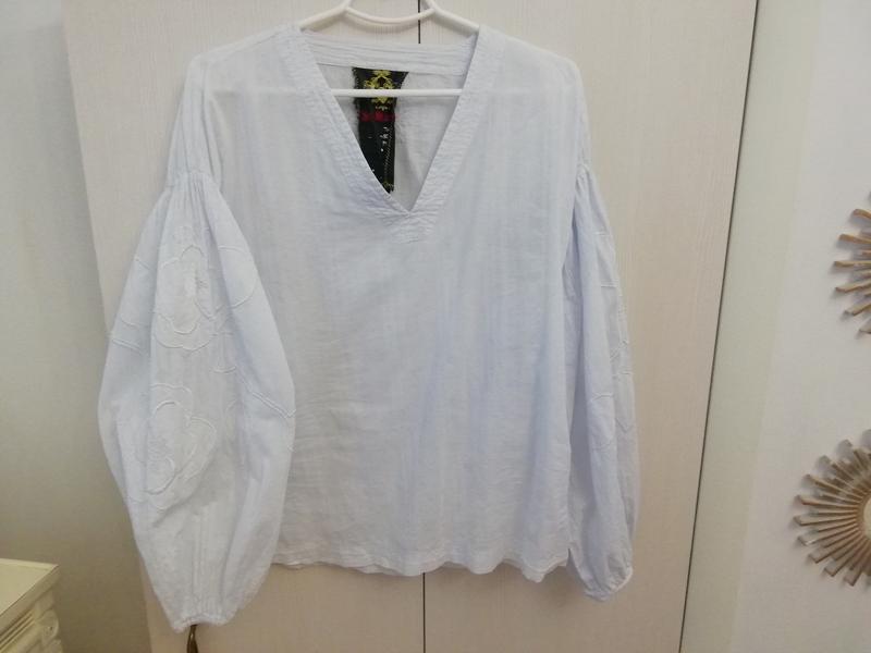 Дуже красива блузка, з расшиьыми рукавами, виглядає дорого і стильно. Бавовна 100%ПОГ 50-51, ПІТ 46,збоку на блискавці. РОЗМІР L, наш 38-40. Фірма St Martins.
