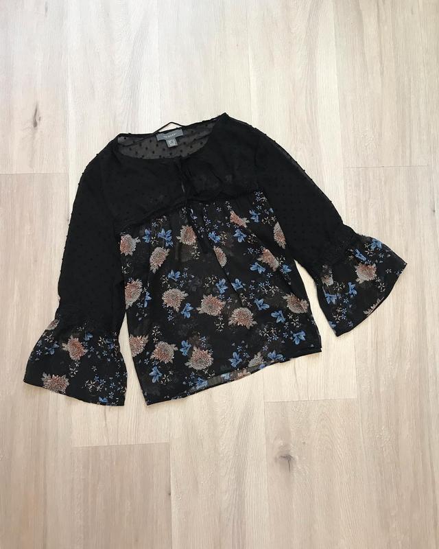 💙165грн Нова шикарна блуза на зав'язці з мереживом в квітковий принт та горох Primark Розмір 14(42), М/L, вільного фасону Дуже гарно на тілі виглядає Матеріал: 100% поліестер • Заміри: Довжина від плеча 54 см, Півохват грудей 54 см, Рукав від плеча 45 см, Рукав від підпашки 29 см • #shmot_if_внаявності