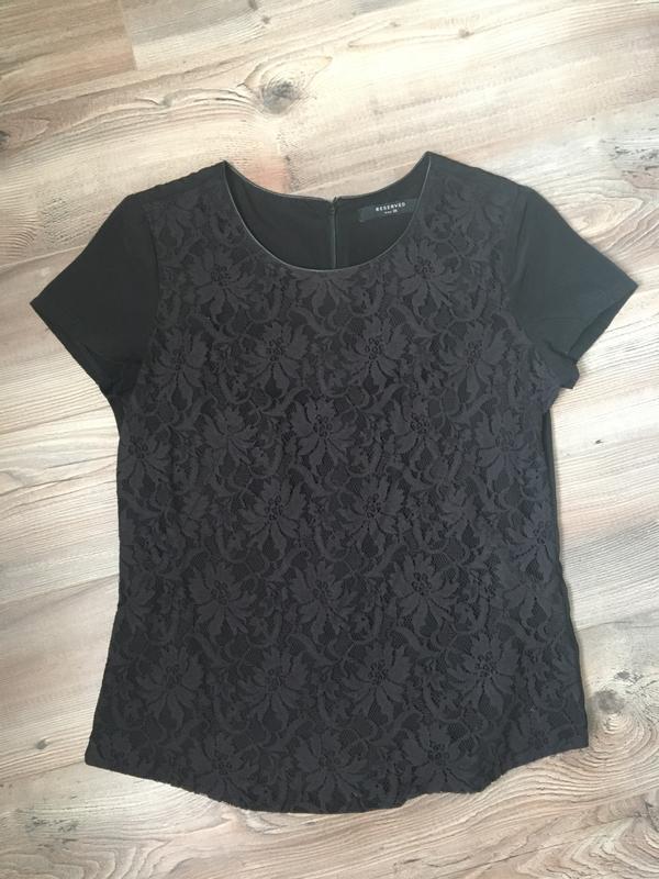 Красивый топ, блуза с коротким рукавом, с окантовкой на воротнике из кожзама. Состояние отличное.