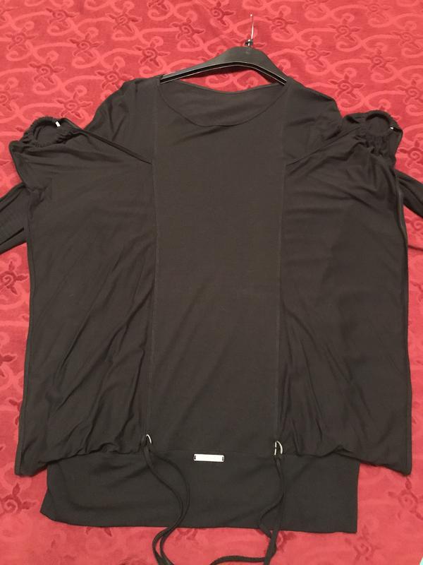 блуза туніка ТМ Maxa Україна не секонд, запахів, плям немає, розмір XXL 52-54, щільний чорний колір, склад 96% віскоза 4% еластан тканина еластична ПОГ 50 см ПОТ 50 см ПОС 50 см довжина рукава 65 см довжина туніки 75 см вертикальні прикраси-крила створюють стройнящий ефект, відмінно виглядає з лосинами, джеггинсами, слимамии, шароварами