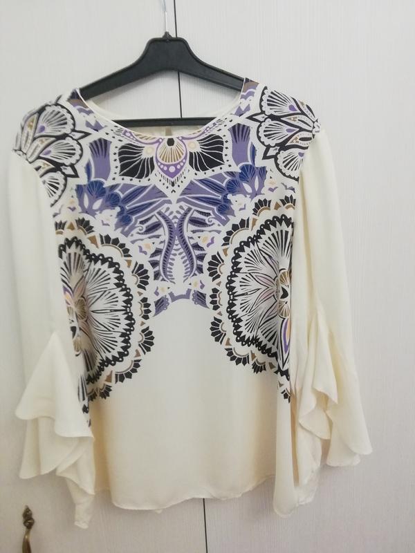 Красивая натуральная блузка с очень оригинальным и женственный рукавом. Размер 38-40. Дл. 63,ПОГ 54.
