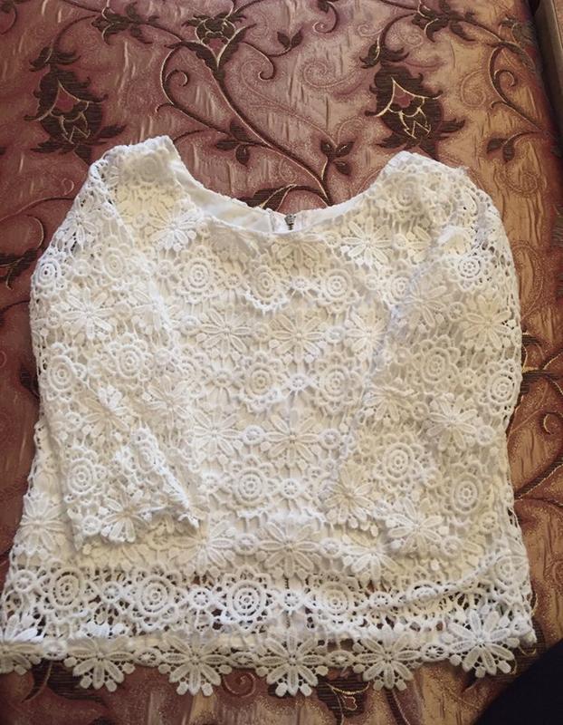 Блузка біла мережевна. З-заді на замочок. Розмір 40. Зсередини є підкладка. Рукав три четверті. Більше фото у приватні повідомлення. Можливий торг.