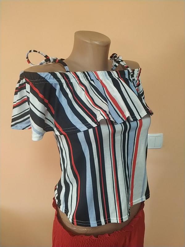 очаровательная блуза с оборкой и вертикальными полосками, вытягивающими силуэт. подвязочки на плечах добавляют кокетливости и очарования длина от резины - 42см полуобхват по верху резины - от 37см до 53см пог - 39см пот - 42см низом - 47см боковой шов - 34см